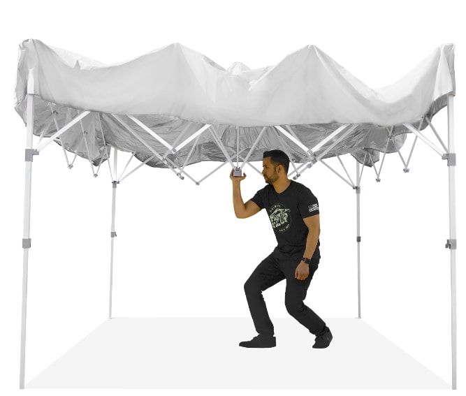 - Easy One-Person Setup: Thanks to The Patriot™ ONE-UP™ Non-Vented Technology, you can set up your canopy in seconds without the hassle of locking or unlocking the legs. Just push up from the center, and your canopy locks securely in place! 👏
